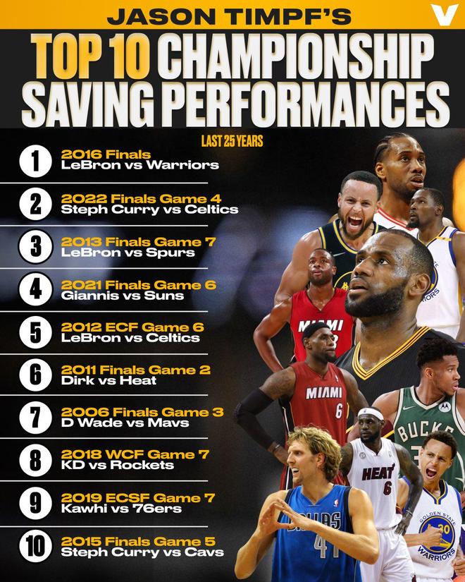 美記盤(pán)點(diǎn)本世紀(jì)以來(lái)挽救冠軍的十大表現(xiàn):詹姆斯三度上榜